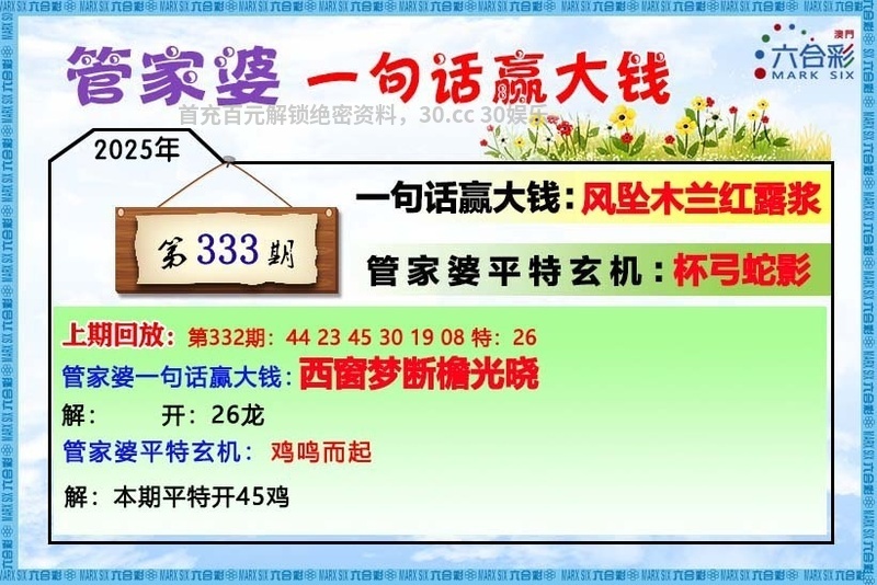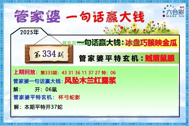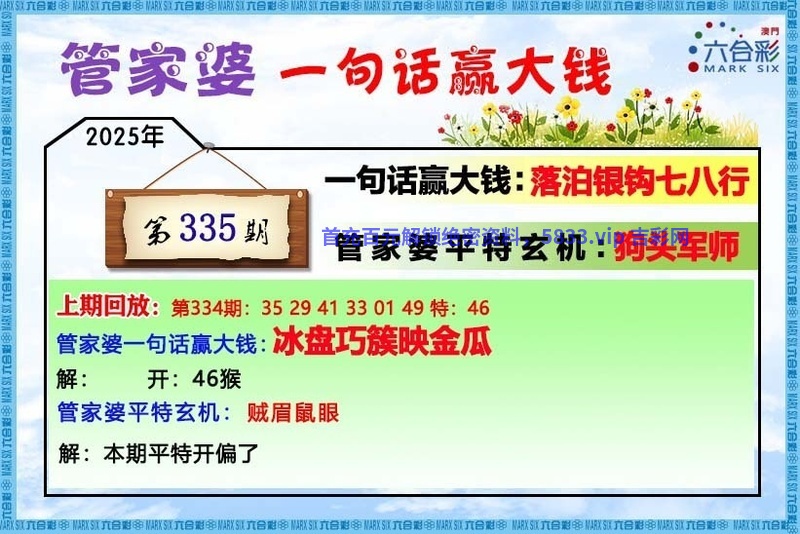 337期:管家婆一句话【蘑卜林中飞玉出】